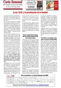 En 1986, siendo ministro de Sanidad Ernest Lluch, se aprueba la Ley General de Sanidad. Sus artículos 66, 67 y 90 abrían una vía de privatización, los conciertos y conciertos singulares. Se trataba, en buena medida, de legalizar lo que ya estaban haciendo numerosas autonomías, y sobre todo Cataluña, que ya destinaba un 36.5% de gasto sanitario público a conciertos con la sanidad privada.