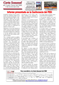 Publicamos en esta Carta Semanal un amplio extracto del informe presentado por el responsable político del partido, que abrió los trabajos de la conferencia y, con ello, queremos invitar a todos los que leen esta carta semanal a participar en el debate.